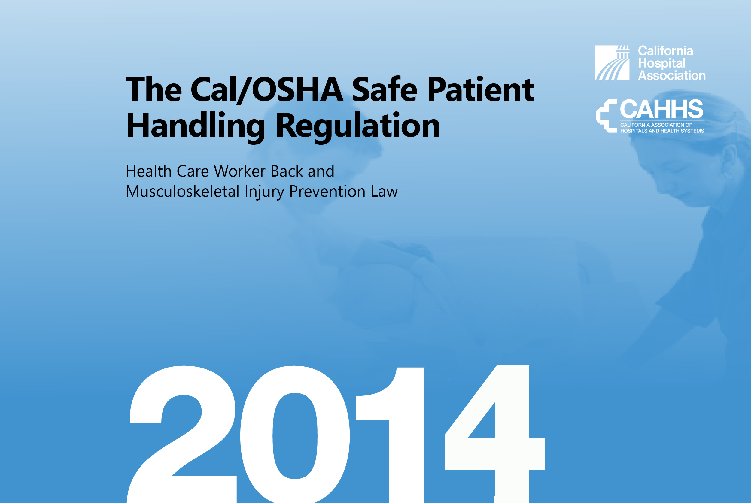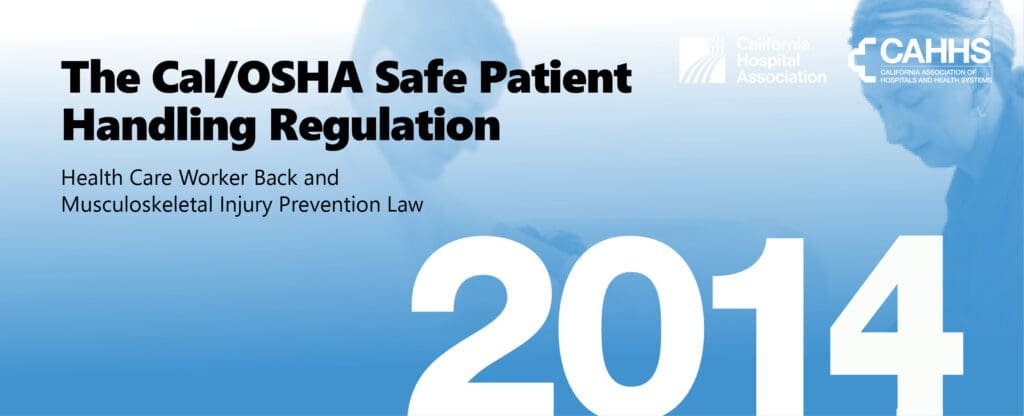 The Cal/OSHA Safe Patient Handling Regulation guidebook is intended to help hospital management understand the requirements of the law and implement it. It is written specifically for California’s hospital human resources executives, employee relations managers, chief operating officers, chief nursing officers, legal counsel, risk managers and department directors.